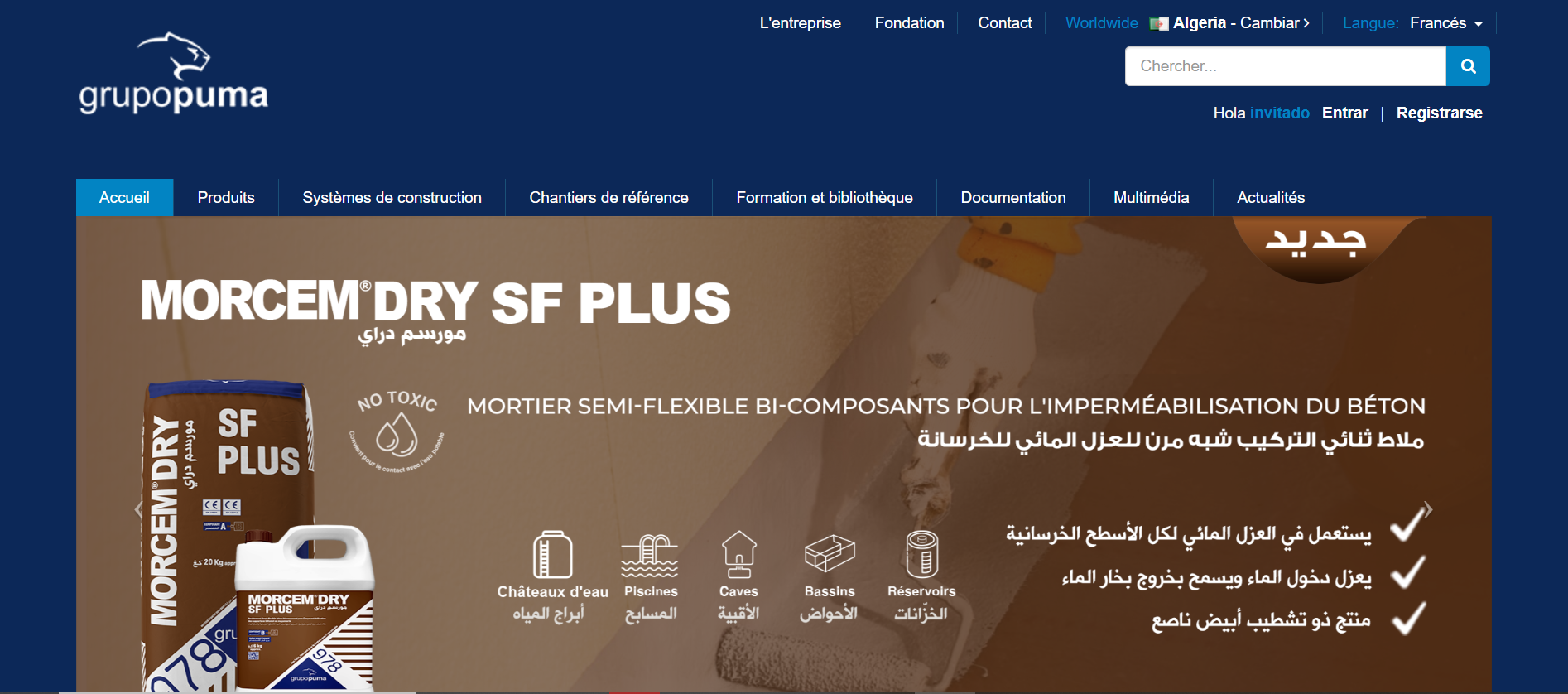 Grupopuma Algérie, filiale du Groupe des Sociétés Hasnaoui est une entreprise leader dans le secteur de la Chimie de la construction en Algérie. Ce sont plus de 40 années d'expérience dans le secteur de la construction que Grupopuma met à la disposition du marché à travers ses trois usines de production implantées à Sidi-Bel-Abbès, Bouira et Constantine, d’une production cumulée de plus de 1500 tonnes/Jr. Sa large gamme couvre divers secteurs de la construction : Pose céramique, mortiers de revêtement et de décoration, systèmes d'isolation thermique, étanchéité et imperméabilisation, réparation et protection des bétons, systèmes de traitement des sols et solutions de paysagisme et une nouvelle ligne de peinture. Produits et systèmes sont le fruit d'une équipe de recherche qui travaille constamment pour améliorer les performances, à minimiser les coûts et l'impact sur l'environnement en garantissant des applications plus faciles et un Contrôle rigoureux de la qualité. Avec un réseau de ventes hautement qualifié, Grupo Puma offre une assistance Technique aux professionnels. Une large couverture du territoire national et une grande souplesse dans la production garantissent une distribution rapide de ses produits, à travers un réseau de plus 70 distributeurs agrées.